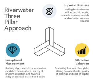 Riverwater consistently applies its The Three Pillar Approach™, the foundation for evaluating each investment candidate. Our research uncovers opportunities in superior businesses that leverage their competitive advantages and are led by exceptional management teams with a proven history of prudent capital allocation and alignment with shareholders. We invest in companies trading below their long-term intrinsic value, focusing on unique, high-quality assets in each sector aiming to generate superior returns and maximize downside protection.